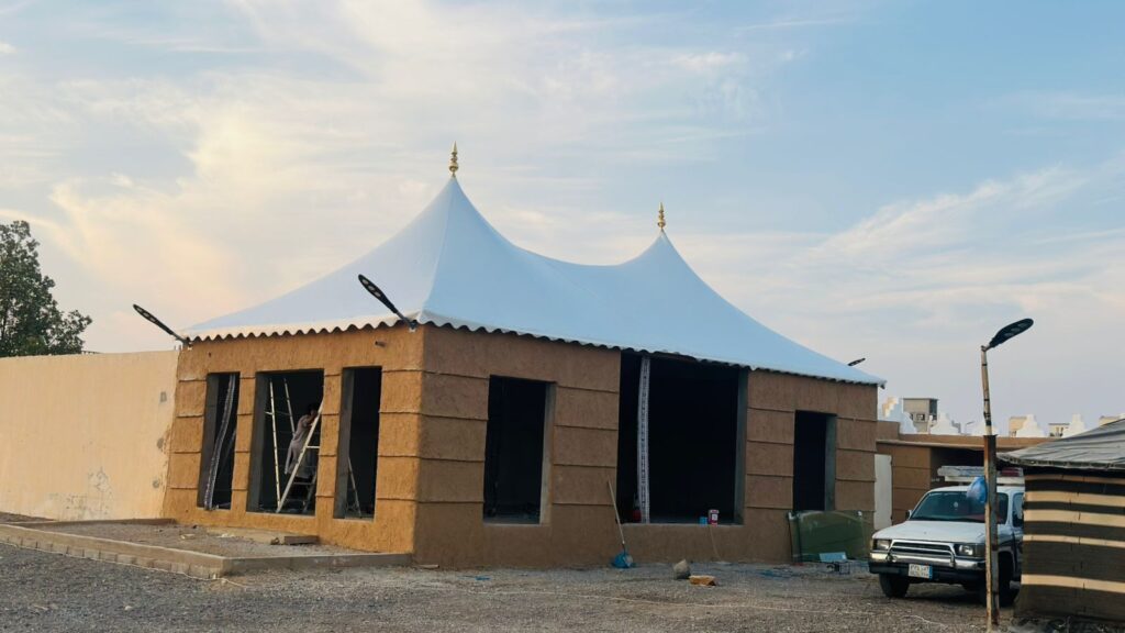 ✔ تنفيذ خيام ثابتة بهياكل قوية وعزل متكامل تتحمل أجواء السعودية.